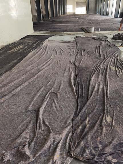 今日施工內容 1,彩板墻頂板安裝 2,一層擋水墻抹灰 3,一層動力電橋架安裝 4,一層地坪施工 5,外墻真石漆施工 6,一層照明安裝 7,一層風管保溫安裝
