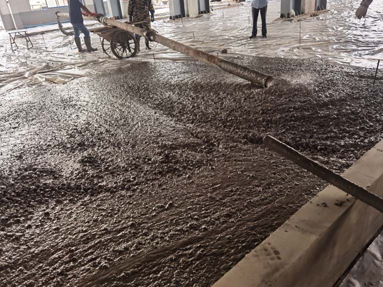 1,場地整理 2,混凝土澆筑 3,混凝土保養 4,鋼構焊接 5,消防噴淋安裝 今日材料進場 商混