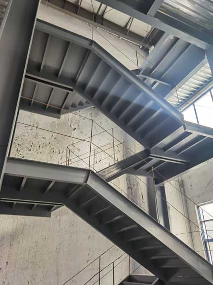 今日施工內容 1,彩板立板安裝 打膠條 2,二樓動力電橋架安裝 3,一樓電梯安裝 4,一層燈具布線管 5,一層消防水管安裝 6,西面室外外墻噴真石漆 7,南面鋼結構施工 8,地坪開始施工