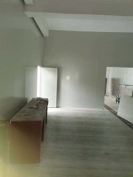 1.施工放線完成100%; 2.排水管溝破除完成100%; 3.樓板開洞完成100%; 4.凈化墻板安裝完成30%; 5.腳踏池砌筑完成100%。