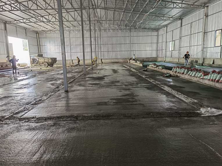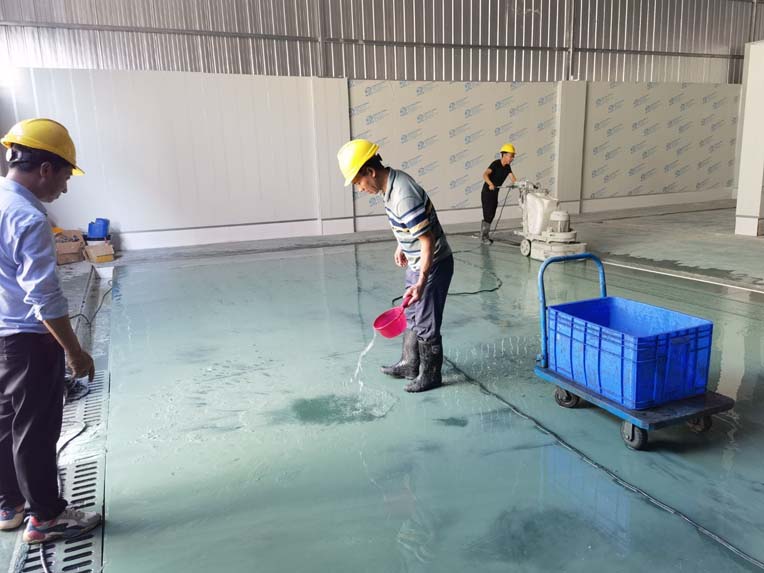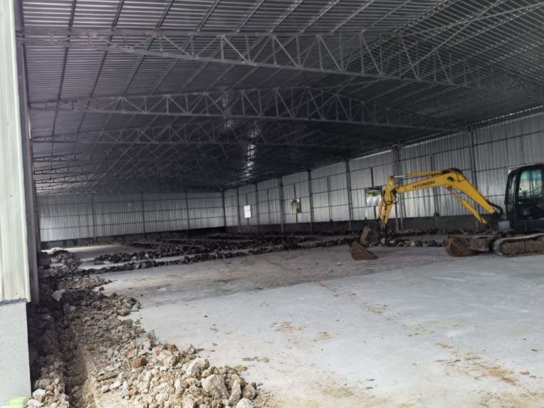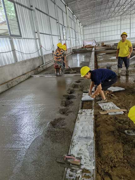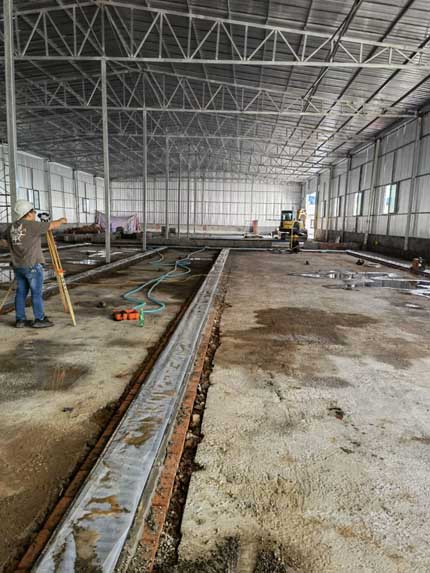 1.不銹鋼水溝折邊件焊接完成。 2.地坪澆筑準備工作完成。