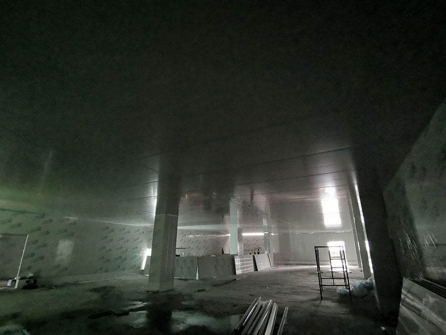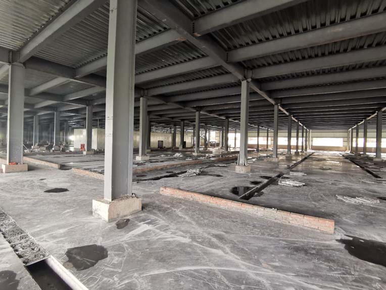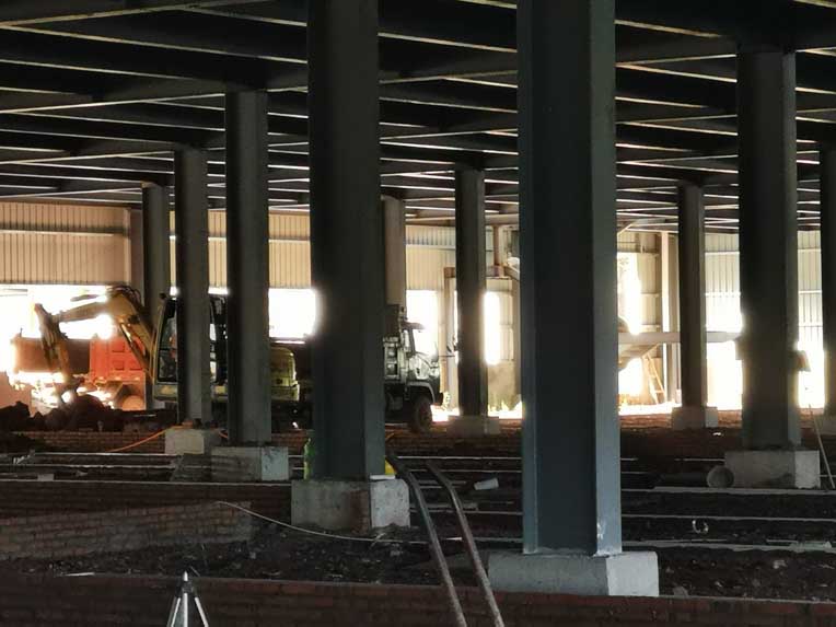 1、頂板施工完成50% 2、包柱子施工完成30% 3、固化地面施工完成20%