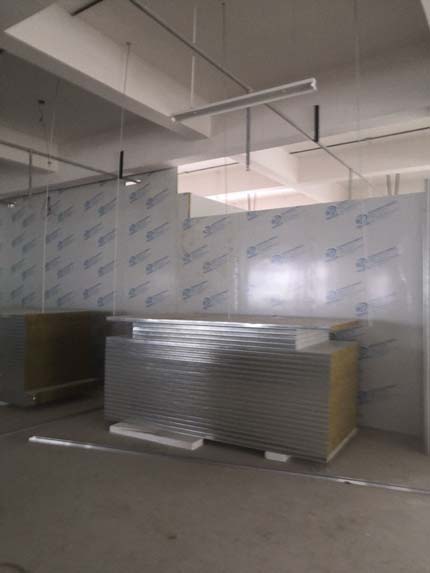 1.風淋室安裝完成 2.成品門鎖安裝完畢100% 3.成品門膠條安裝完成100% 4.工況燈安裝完成95% 5.插座安裝完成100%