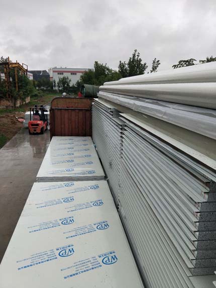 1:彩鋼墻板完成60%; 2:彩鋼頂板完成35%; 3:掛絲桿完成35%; 4:撕膜打膠完成38%; 5:自制門完成20%