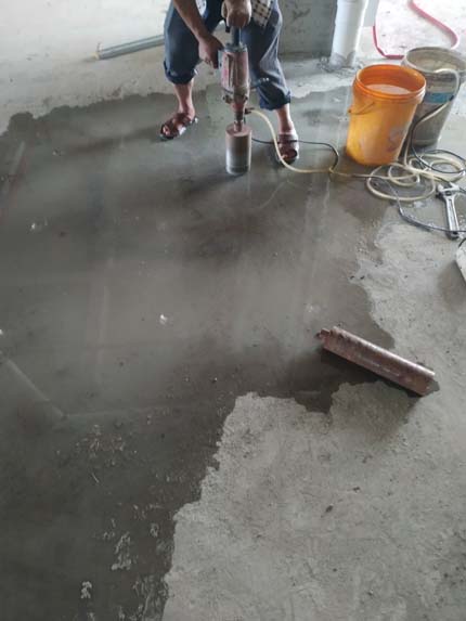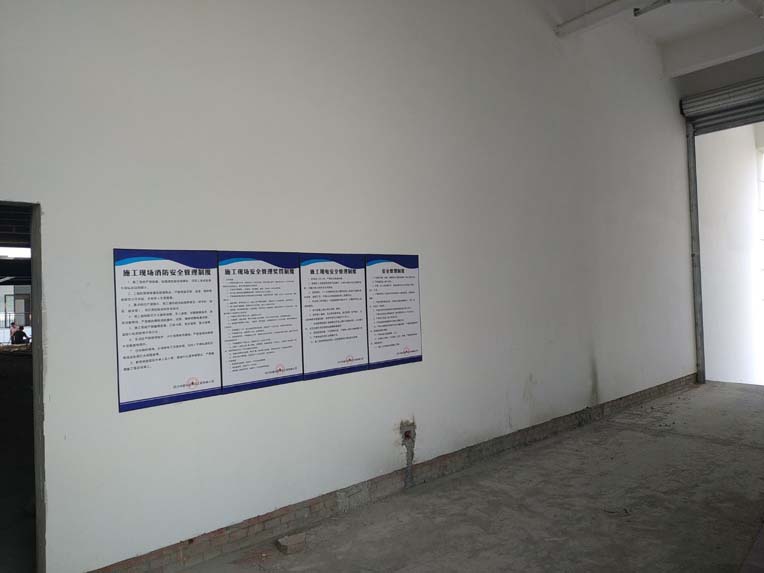 地漏開孔完成,施工現(xiàn)場(chǎng):橫幅,配電箱,制度牌安裝