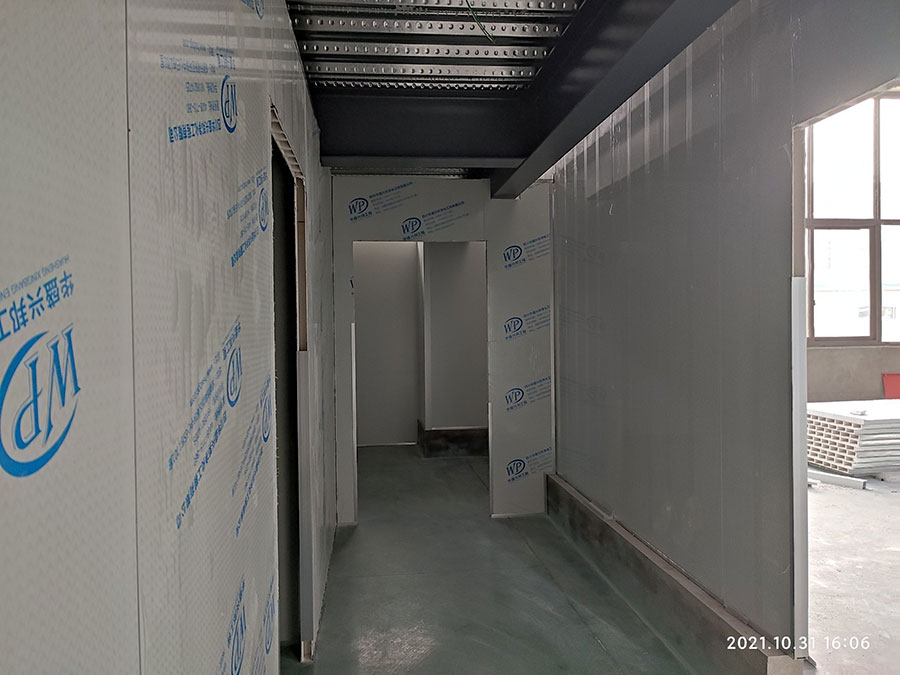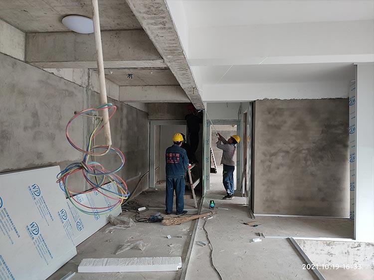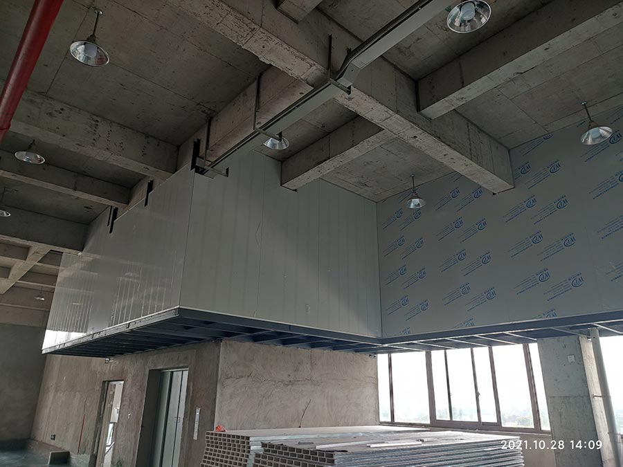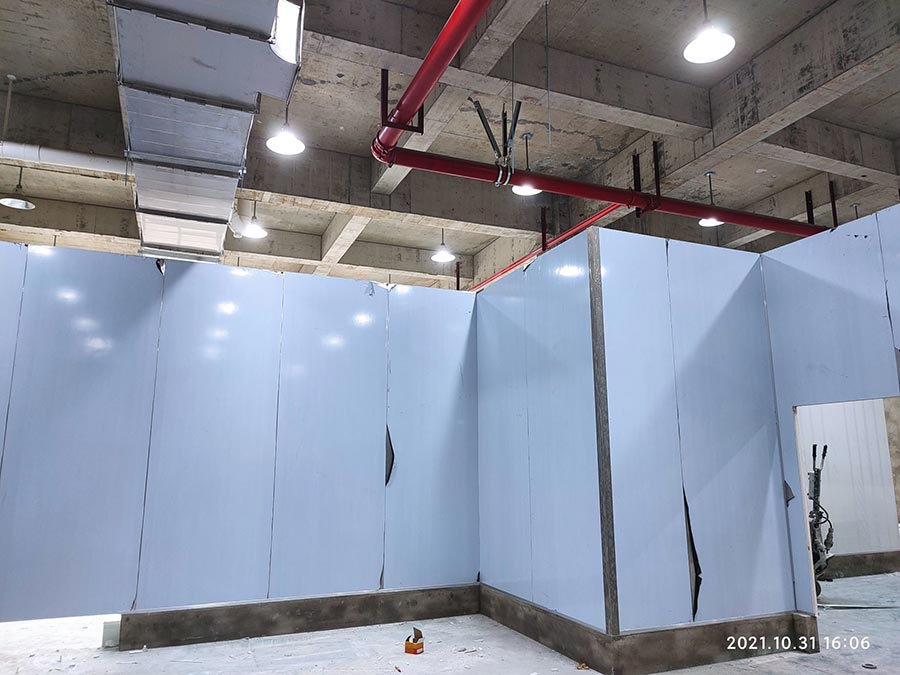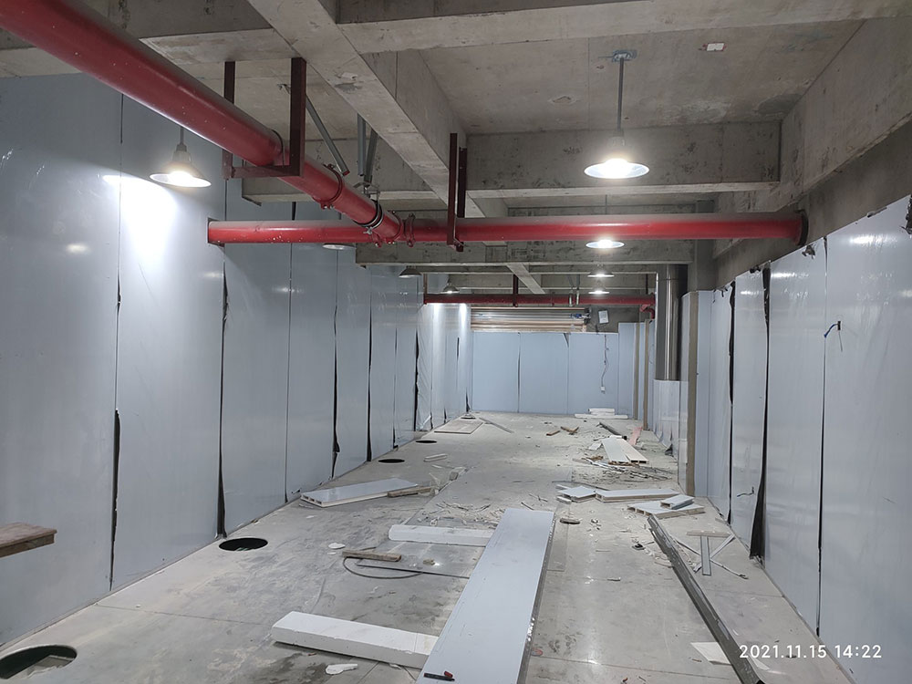 工程進(jìn)度: 1,一樓鋼平臺(tái)彩鋼隔墻完成50% 2,二樓更衣區(qū)過道頂板完成 3,3樓頂板吊桿安裝完成80% 4,電工進(jìn)場(chǎng),點(diǎn)位繪制并跟甲方確認(rèn)完成3,4樓