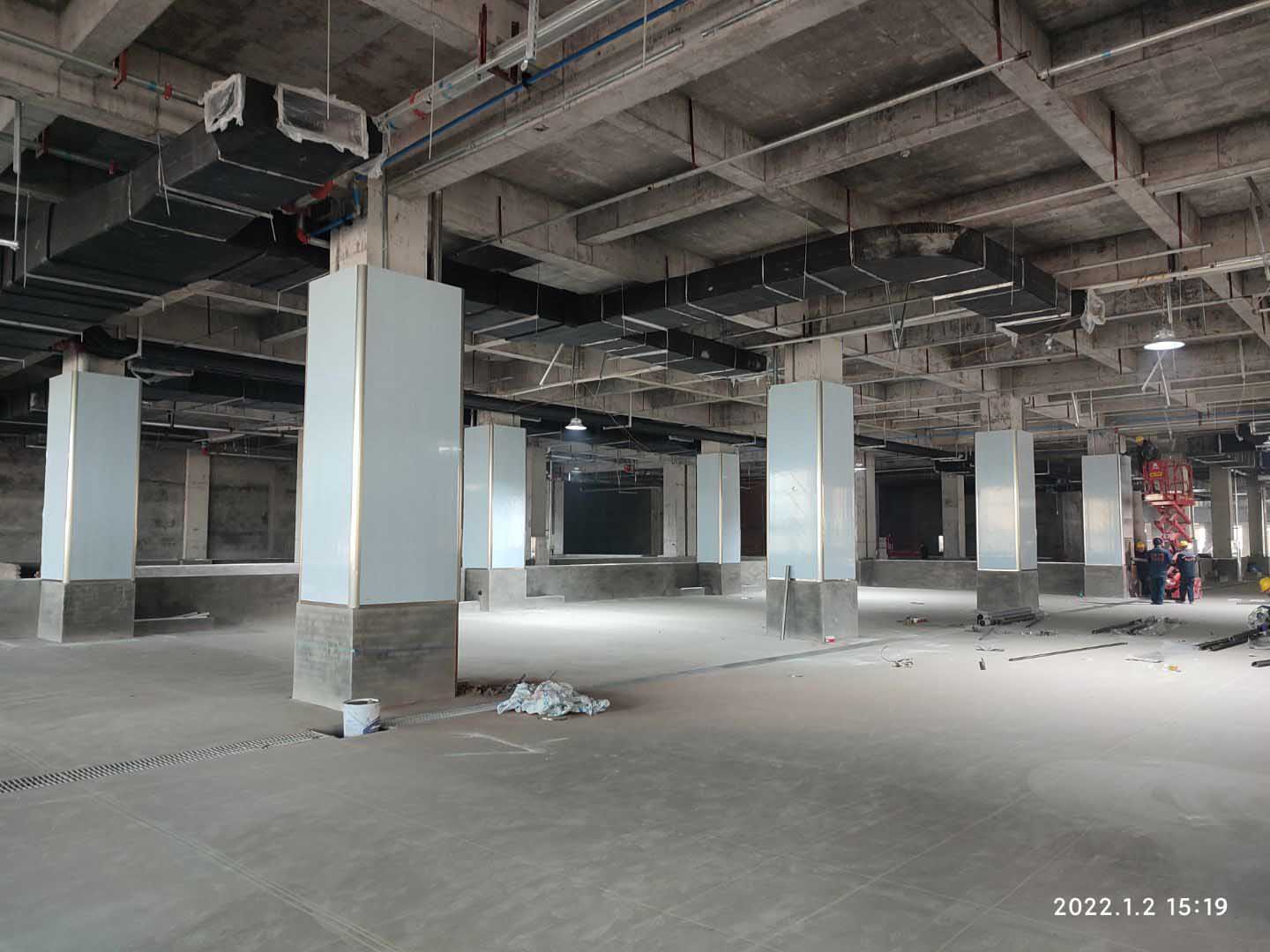 1,彩鋼板吊頂完成90% 2,圓弧完成40% 3,空調設備末端水管配管完成95% 4,照明插座配管穿線完成75%