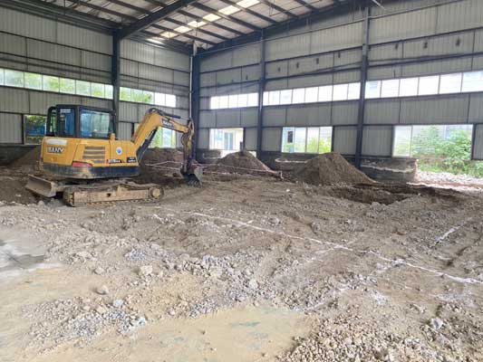 ①之前的基坑回填完成。②新基坑放線完成。③新基坑開挖完成百分之三十五。