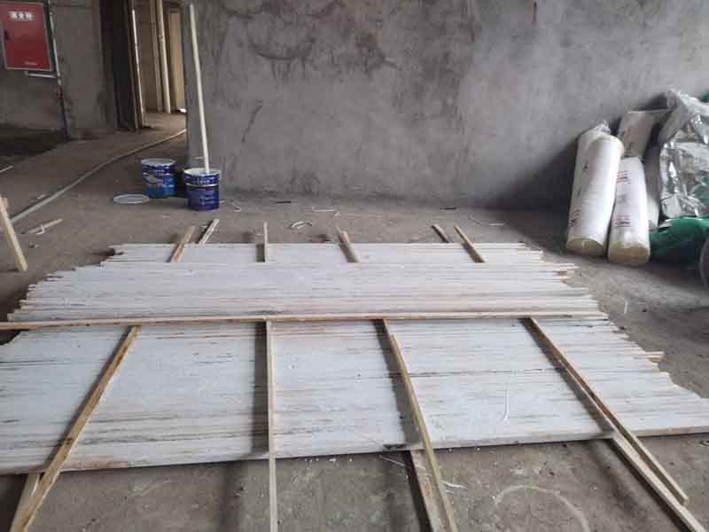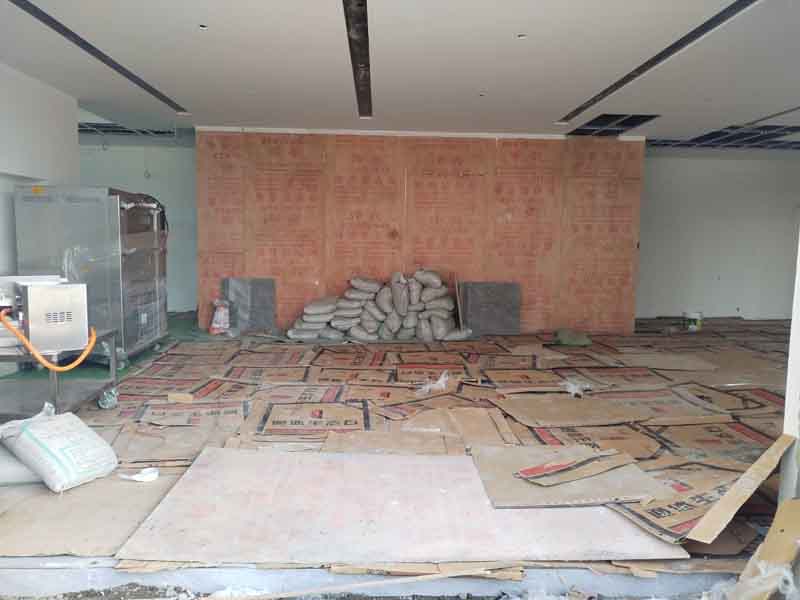 今日施工內容 1.臨時用水,用電架設 2.木工隔墻放線 3.木條防火涂料滾涂 4.施工場地整理